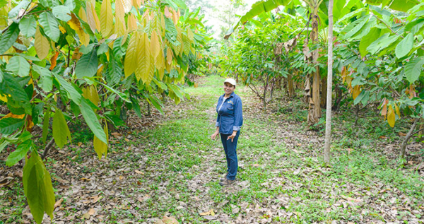 エリザベスさん。カカオ農園にて。