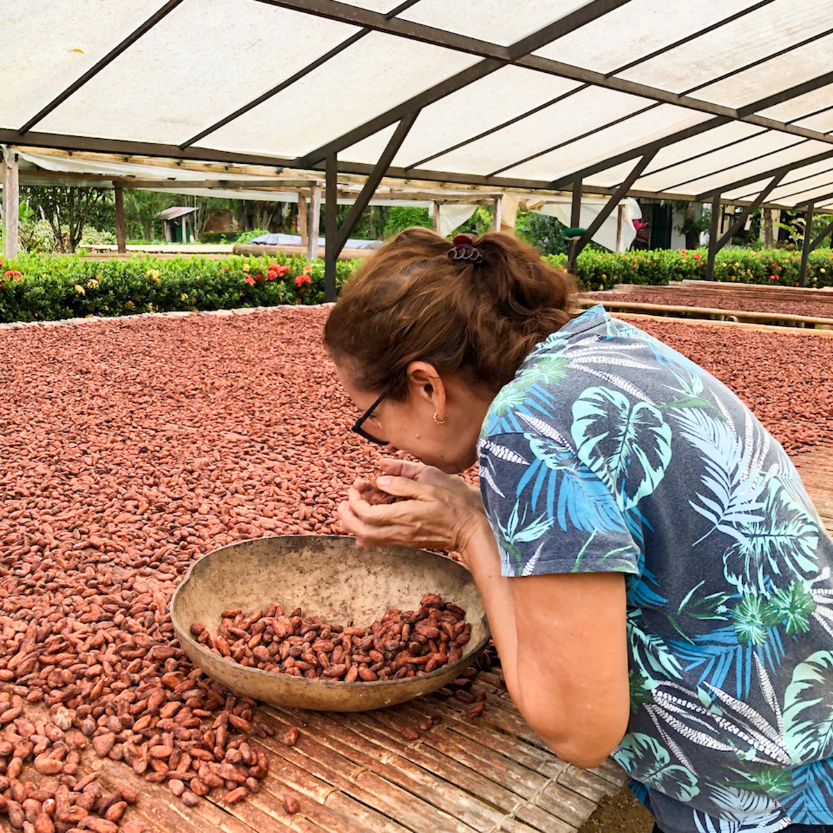 初めてこのカカオに出会ったのは2011年。当時はまだ栽培されているカカオの本数も少なく、チョコレートにすることも叶いませんでした。偶然にも当時とても丁寧にカカオを育てている生産者のエリザベスさんに出会い、彼女が植え始めたこのカカオの収穫を一緒に待つことにしました。待つこと4年。やっと収穫ができるようになり、この「エリザベス71%」が生まれました。最初はあまり実が収穫できず、少ししかチョコレートにすることができませんでしたが、そこから更に4年経ち、思いを込めたパッケージで皆様にお届けできるようになりました。おいしくなるよう、エリザベスさんと私たちの願いが詰まった1枚。艶やかにとろける香りをお愉しみ下さい。