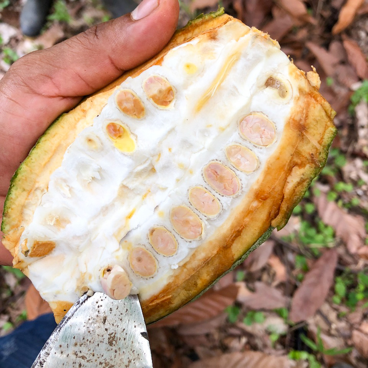 コロンビアとエクアドルとの国境沿いに位置する「トゥマコ」。品種のるつぼとも言えるこの地には古くから様々なカカオが存在し、その中には希少な「ホワイトカカオ」が現在数種存在します。