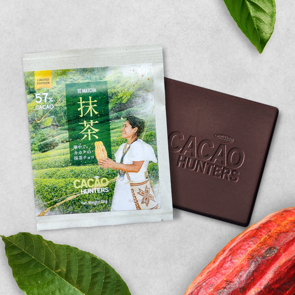 コロンビアの北部、シエラネバダ山脈の山奥に居住する先住民族「アルアコ族」のカカオと、京都産の抹茶を組み合わせた抹茶チョコレート。秘境の自然に囲まれて育つカカオが醸し出す、白葡萄や柑橘のような瑞々しい香り。そこに溶け込むように、緑が芽吹く若草のような清々しい抹茶の香りと旨みが広がります。凛とした奥ゆかしさが感じられる1枚です。